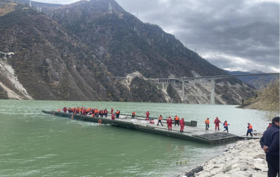 11月11日,四川省阿壩州馬爾康市雙江口水電站紅旗橋發(fā)生垮塌事故。險情發(fā)生后,中國船舶集團有限公司旗下中船應急研制的動力舟橋緊急投入搶險救援行動中。