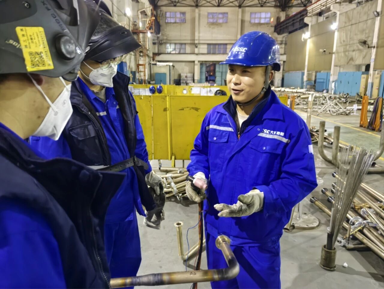 在大連造船的生產(chǎn)現(xiàn)場,全國技術(shù)能手、遼寧省突出貢獻高技能人才王玉坤,手持焊槍圍站在工友中間,用一線工匠的樸實話語宣講黨的二十屆四中全會精神,用身邊事解讀全會精神,讓全會精神在造船生產(chǎn)一線落地生根。