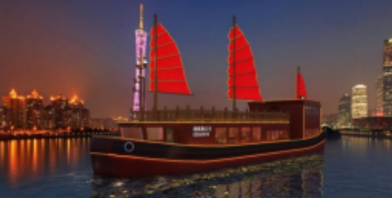 ????160客位純電動(dòng)客船“闊闊真公主號(hào)”總長(zhǎng)36米,型寬8米,型深3米。該船是仿七百多年前元朝闊闊真公主遠(yuǎn)嫁波斯時(shí)乘坐的古船建造而成,有“福船送福”的寓意。建造后將行走于珠江,夜游展示亞洲文化交流的傳奇。