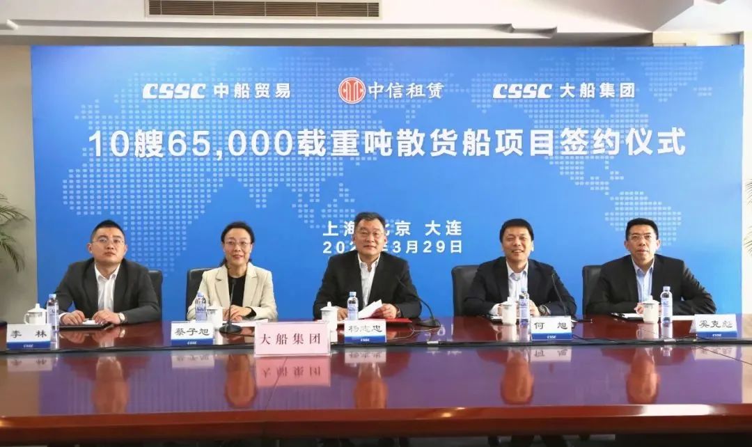 3月29日,中國(guó)船舶集團(tuán)旗下中船貿(mào)易聯(lián)合大船集團(tuán)與中信金融租賃有限公司以“云簽約”的形式正式簽署10艘6.5萬(wàn)噸散貨船新造船合同。該批船舶完工交付后將租賃給國(guó)內(nèi)一流航運(yùn)公司,服務(wù)國(guó)家資源能源運(yùn)輸,主要運(yùn)營(yíng)國(guó)內(nèi)沿海航線及長(zhǎng)江沿線。