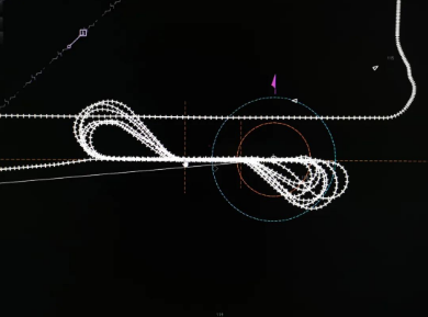 愛達(dá)·魔都號每測一次航速就會掉頭重來,在蔚藍(lán)的大海上,重復(fù)畫出“∞”字樣。