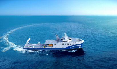 該船總長(zhǎng)110.8米,型寬20.0米,排水量約7000噸,設(shè)計(jì)航速15節(jié),續(xù)航力10000海里,定員80人,具備無(wú)限航區(qū)全球航行能力。