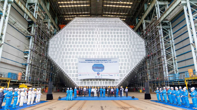 日前,全球最大B型菱形液貨艙在江南造船完工,將被用于世界首制99000立方米超大型液化乙烷運輸船(VLEC)。江南造船自主研發(fā)的B型艙 若配置不同的艙體材料和絕緣系統(tǒng)  ,可適用于裝載不同溫度的液化氣貨品。