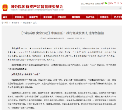 國資委網(wǎng)站|中國船舶:踐行低碳發(fā)展 打造綠色船舶
