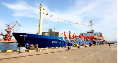 2020年,大連造船將散貨船改裝而成的“民德”號交付。這是具有完全自主知識(shí)產(chǎn)權(quán)的舷側(cè)開孔式養(yǎng)殖工船。交船的同時(shí),簽約了10+8艘大型養(yǎng)殖工船項(xiàng)目。