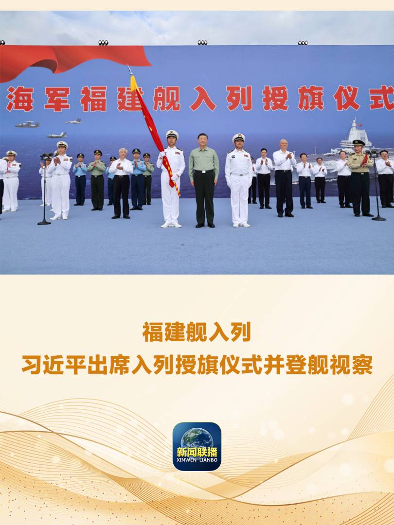 我國(guó)第一艘電磁彈射型航空母艦福建艦入列授旗儀式5日在海南三亞某軍港舉行。中共中央總書記、國(guó)家主席、中央軍委主席習(xí)近平出席入列授旗儀式并登艦視察。