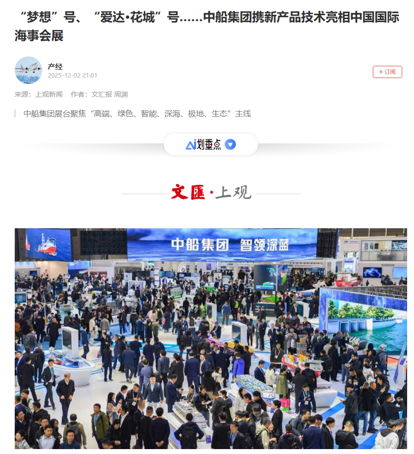 12月2-5日,2025中國國際海事會展期間,中國船舶集團(tuán)有限公司攜眾多新產(chǎn)品新技術(shù)精彩亮相,并圍繞六大領(lǐng)域舉行了40多場發(fā)布及推介活動。