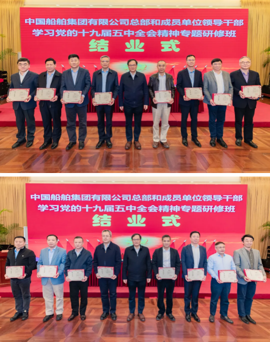4月23日,中國船舶集團有限公司總部和成員單位領(lǐng)導(dǎo)干部學習黨的十九屆五中全會精神和黨史學習教育專題研修班圓滿結(jié)業(yè)。培訓(xùn)期間,中國船舶集團黨組書記、董事長雷凡培以《深入貫徹落實習近平總書記重要指示批示精神 努力加快建設(shè)世界一流船舶集團》為題給全體學員們講授了第一課,中國船舶集團黨組副書記、總經(jīng)理楊金成,黨組成員、副總經(jīng)理孫偉、盛紀綱以及相關(guān)部門負責人先后出席各期結(jié)業(yè)式并聽取了學員們的學習匯報。
