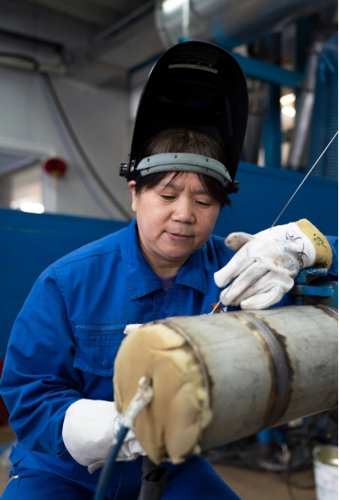 至今,朱瑞霞已經(jīng)參與了“遠(yuǎn)望”系列船、“雪龍2”號(hào)、南昌艦等國(guó)家重點(diǎn)項(xiàng)目的焊接工作。她說(shuō),當(dāng)時(shí)有人高度評(píng)價(jià)稱(chēng):“你焊的管子可以免檢?!钡珘毫σ搽S之而來(lái),“我當(dāng)時(shí)就想,船一出海就是半年,我的焊接要是出問(wèn)題,就是人命關(guān)天?!闭且?yàn)檫@種“軸”,朱瑞霞先后攻克了鎳銅管焊接變形、HDR不銹鋼焊接、鈦合金焊接等一系列高難度問(wèn)題。她主導(dǎo)研發(fā)了十余項(xiàng)焊接專(zhuān)利技術(shù),攻克了薄壁管道焊接難題,還創(chuàng)新研制了特有的工裝,獲得外國(guó)專(zhuān)家的認(rèn)可和推廣應(yīng)用。