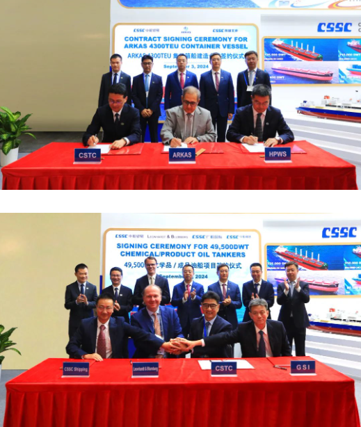 此次展會上,集團公司有關成員單位負責人率隊赴展會開展重點船海項目經營洽談并拜訪當?shù)睾椭苓厙抑饕蛻簟<瘓F公司以“高端綠色、領跑未來”為參展主題,展臺設置了集團總體區(qū)、高端綠色船舶區(qū)、先進動力配套區(qū)共3個展示區(qū)域,重點展示了首艘國產大型郵輪、27.1萬立方米超大型LNG(液化天然氣)運輸船、10800車LNG雙燃料汽車運輸船、全球首艘LNG雙燃料VLCC(超大型油船)、21萬噸氨燃料散貨船、9.3萬立方米超大型全冷式液化氣船等一系列技術含量高、全球競爭力強的高端綠色船型,以及CPGC-WinGD 10X92DF-M甲醇雙燃料發(fā)動機、船用供氣系統(tǒng)、船用碳捕捉系統(tǒng)、船舶新能源動力系統(tǒng)解決方案等滿足IMO(國際海事組織)當前和未來排放要求的先進動力配套設備,充分彰顯了中國船舶集團的國際化品牌形象及引領國際船舶市場創(chuàng)新發(fā)展的澎湃動力。